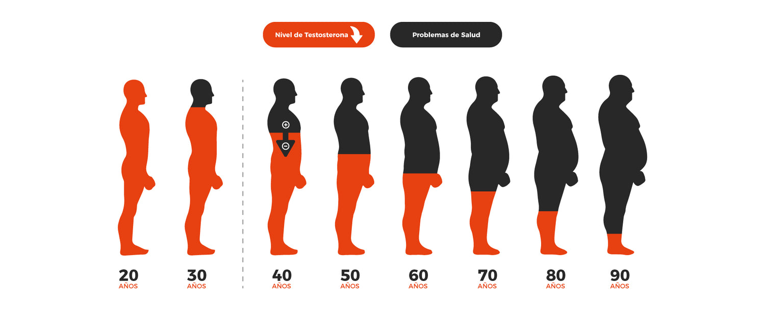 Los niveles de testosterona disminuyen de forma gradual con la edad a partir de los 30 años.
