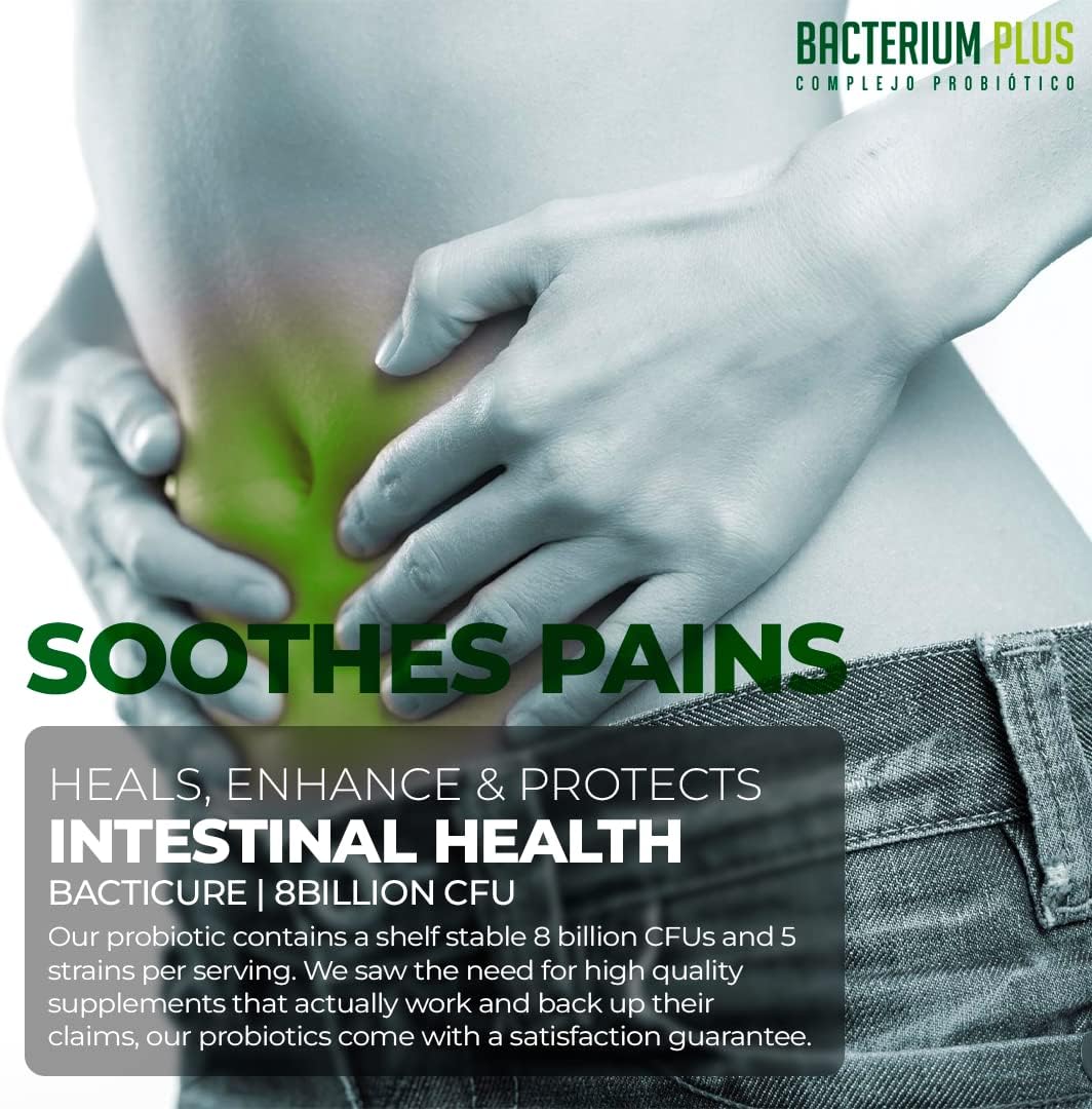 Bacterium Plus is composed of three colonies of Lactobacilli Acidophilus, Gasseri and Rhamonosus added to 2 colonies of Bifidobacriums Lactis and Infantis. These 5 colonies are beneficial to the body and work in communication with the digestive and immune systems. In addition, it contains highly concentrated vegetarian capsules with millions of Lacto-bacilli, Acidos-lactis that helps to effectively control Candidiasis and acts as an immunological barrier.