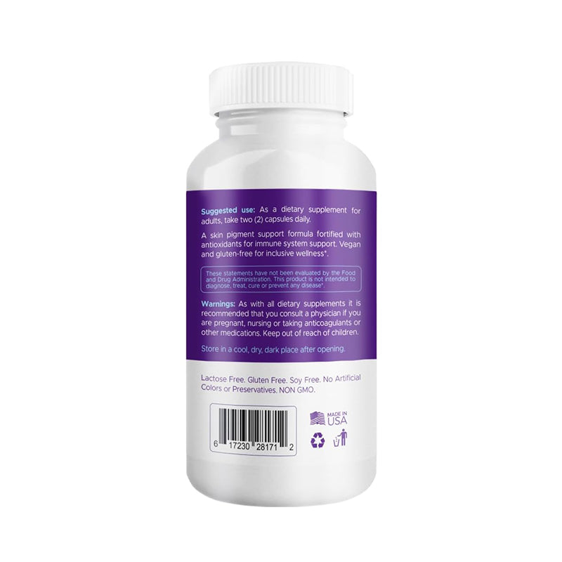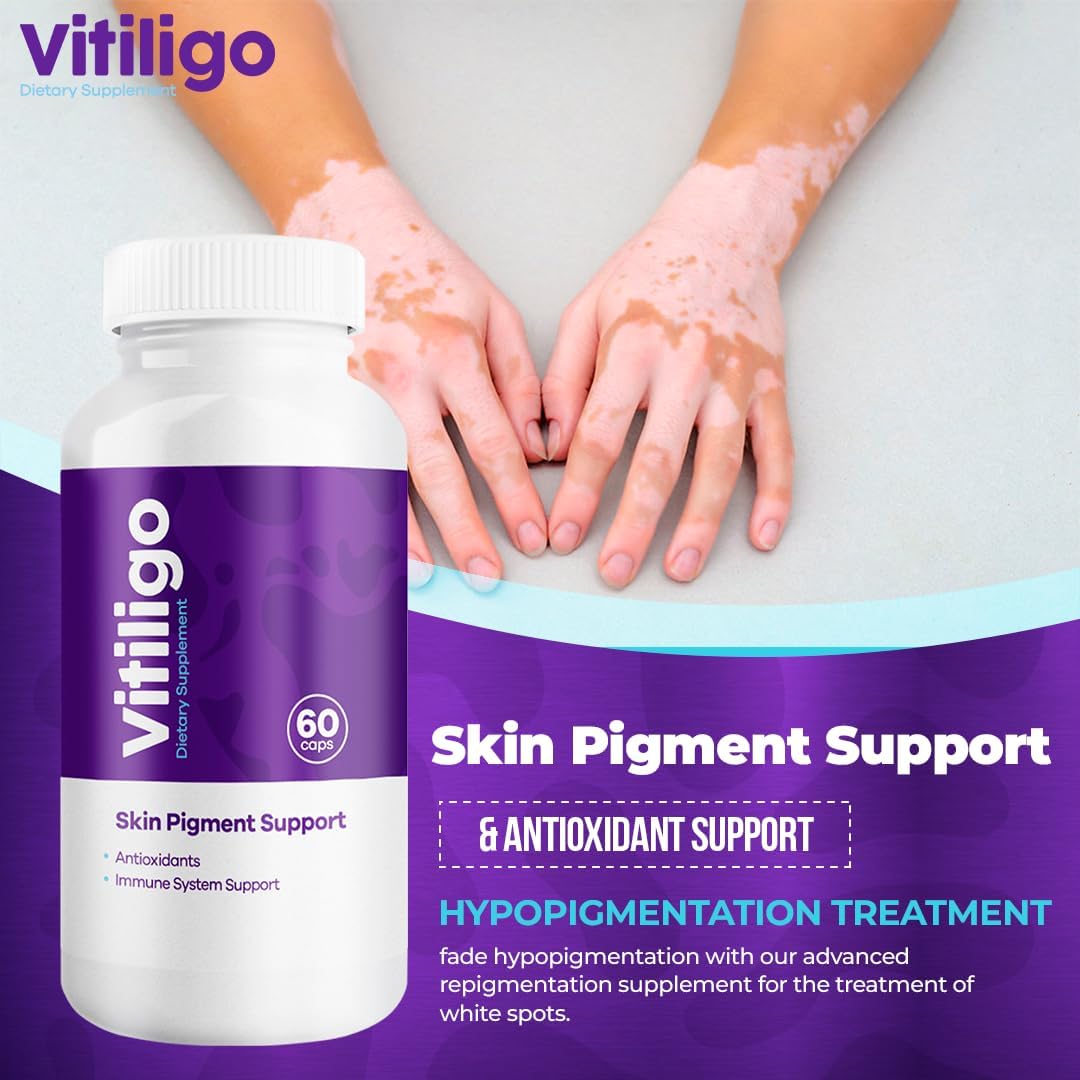 Vitiligo Capsules support skin pigmentation with essential vitamins and antioxidants like Vitamin C, E, and Zinc, helping to promote an even skin tone and overall skin health. The natural, allergen-free formula is designed for daily use, and the easy-to-swallow capsules fit seamlessly into your routine. Manufactured in a GMP-certified facility, they ensure purity, safety, and reliable quality for effective support in improving skin pigmentation and reducing white spots.